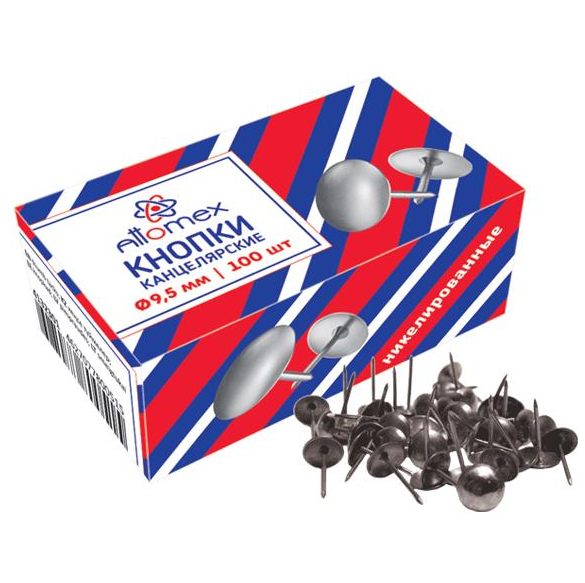—Кнопки канцелярские 'Attomex', 9,5 мм , (100 шт;уп), 4132301