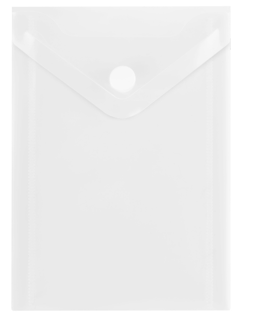 —Папка-конверт на кнопке СТАММ А6 (105х148 мм), 150 мкм, пластик, прозрачная, бесцветная, ММ-13809