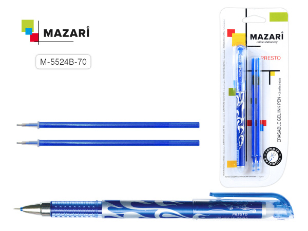 Ручка гелевая со стираемыми чернилами PRESTO, СИНЯЯ + 2 стержня,  игольчатый пиш.узел 0.5 мм, M-5524