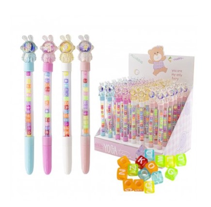 Ручка шариковая Alingar, Космозаяц, синяя, 0,7 мм, круглый прозрачный корпус с бусинами,  AL10638
