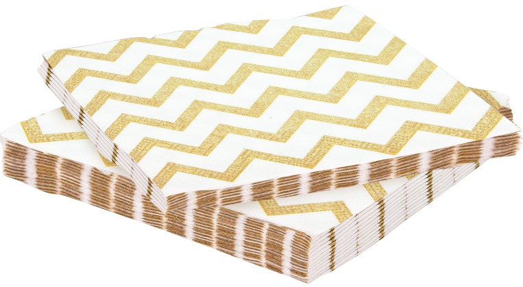 —Салфетки Белые Зигзаги золото 33х33 см, (20 шт;уп), 6224014
