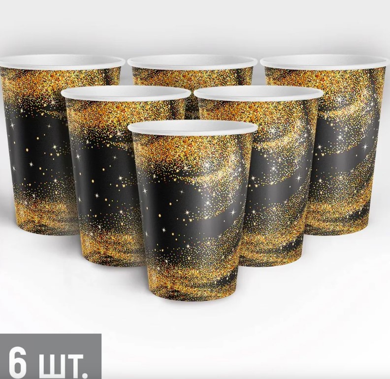 —Набор стаканов 'Черное с золотом', 250 мл, (6 шт;уп), 30000858