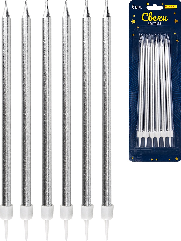 —Свечи для торта на подставке 'Торжество', 0,5х13 + 2 см, (6 шт), серебристые, С-2024