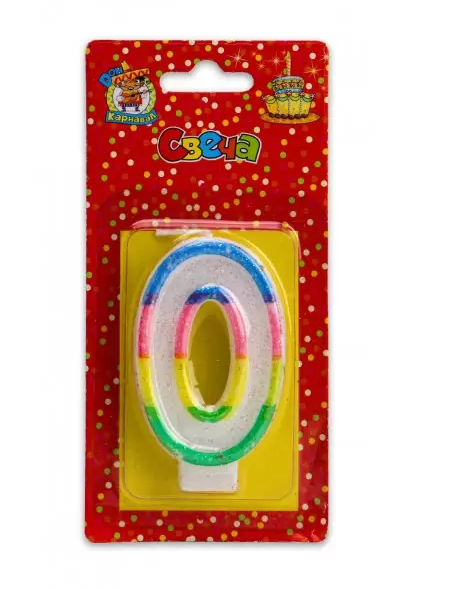 Свеча для торта 'Цифра 0 Разноцветная оконтовка с блёстками', С-2415
