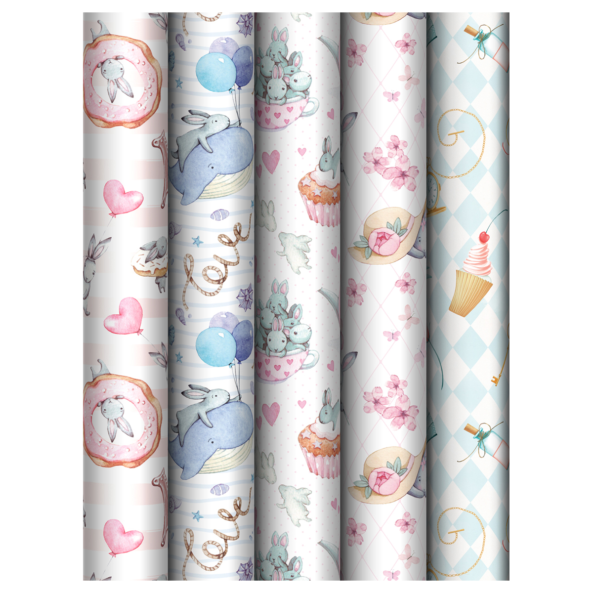 Упаковочная бумага глянц. 70х100 см, MESHU 'Tenderness', 80 г;м2, ассорти, 5 дизайнов, MS_62804
