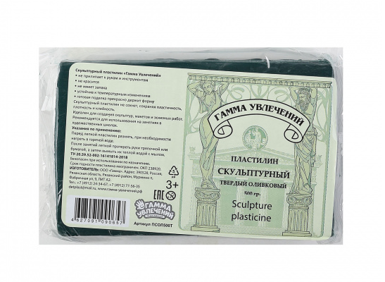 —Пластилин скульптурный Гамма увлечений, оливковый, 500 гр., твердый, ПСОЛ500Т