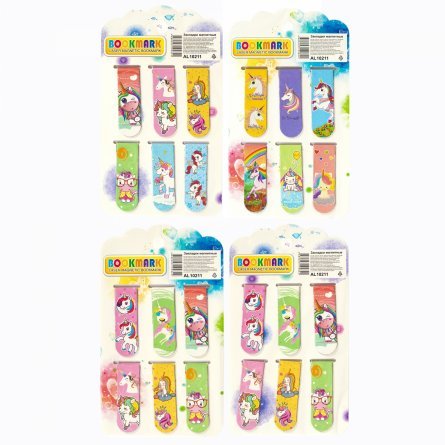 —Набор магнитных закладок, Alingar, 120х20 мм, 'Единорожки', (6 шт;уп), европодвес, AL10211