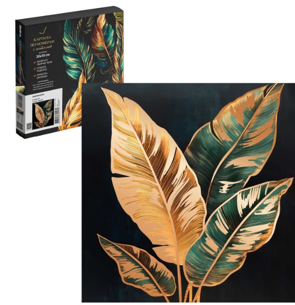 —Картина по номерам с поталью ЗОЛОТЫЕ ЛИСТЬЯ, 30x30 см, 15 цветов, 71274