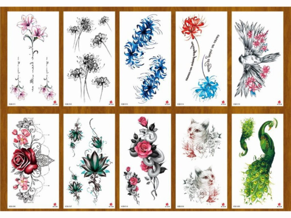 —Татуировка-наклейка (11,4х 21 см) Цветочный микс 2, ТА-1764