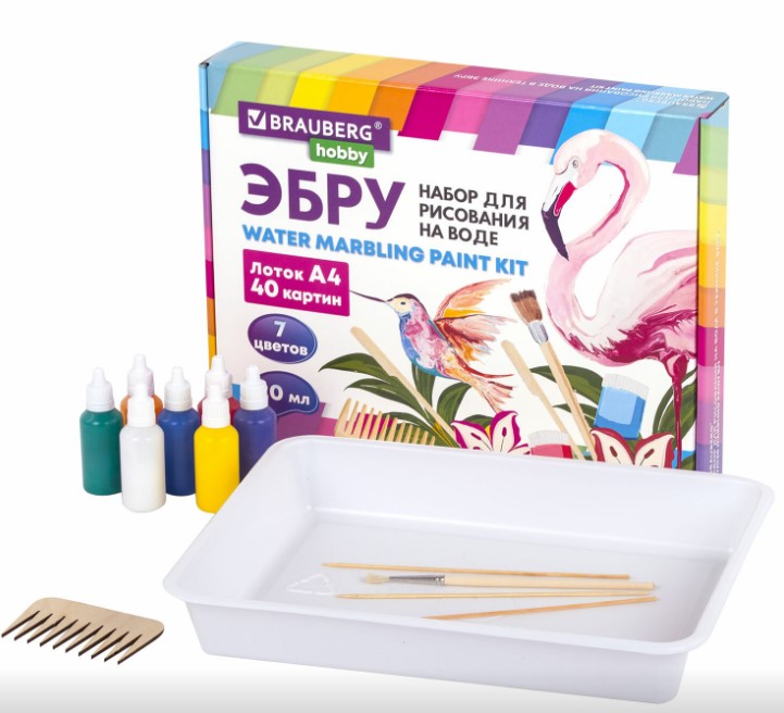 ЭБРУ набор для рисования на воде 7 цветов по 20 мл (40 картин), лоток А4, BRAUBERG HOBBY, 665354